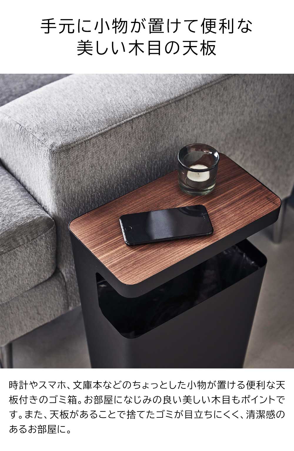 天板付きトラッシュカン リン 角型 山崎実業 RIN ブラウン ナチュラル 1981 1982 ゴミ箱 yamazaki サイドテーブル ソファ ソファー トラッシュカン ごみ箱 おしゃれ